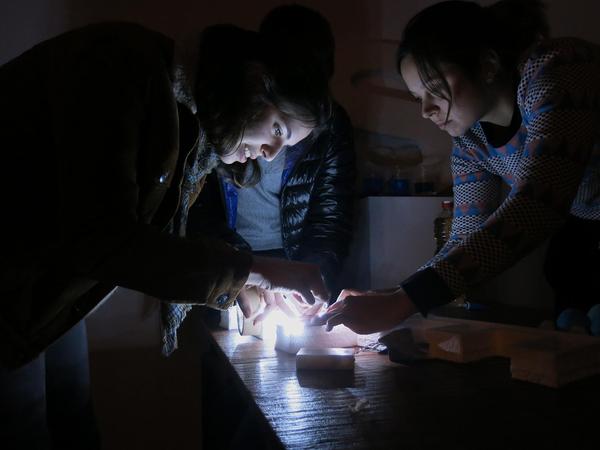La compañía de Teatro Viento Sur ya ha hecho sus primeras pruebas “Ilumina tus sueños” iluminando sus propios trajes usados de obras de teatro.