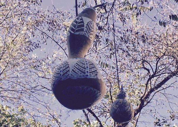Cada racimo cargado con un mensaje escrito de puño y letra por vecinas y una semilla recogida en las frondas del barrio.