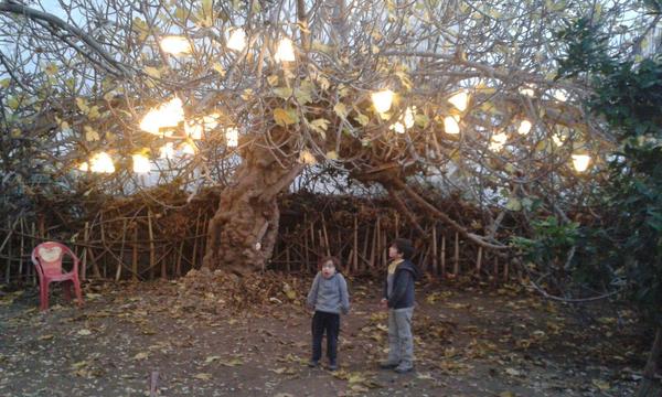 Hasta el día 6 de Enero estará abierta la intervención de #lucesdebarrio en los huertos de Miraflores. Como el horario es fundamentalmente diurno, más que luces encontrarán reflejos, sombras y destellos amarillos. Acompañándolos, misteriosos fragmentos seleccionados por los niños del programa ed